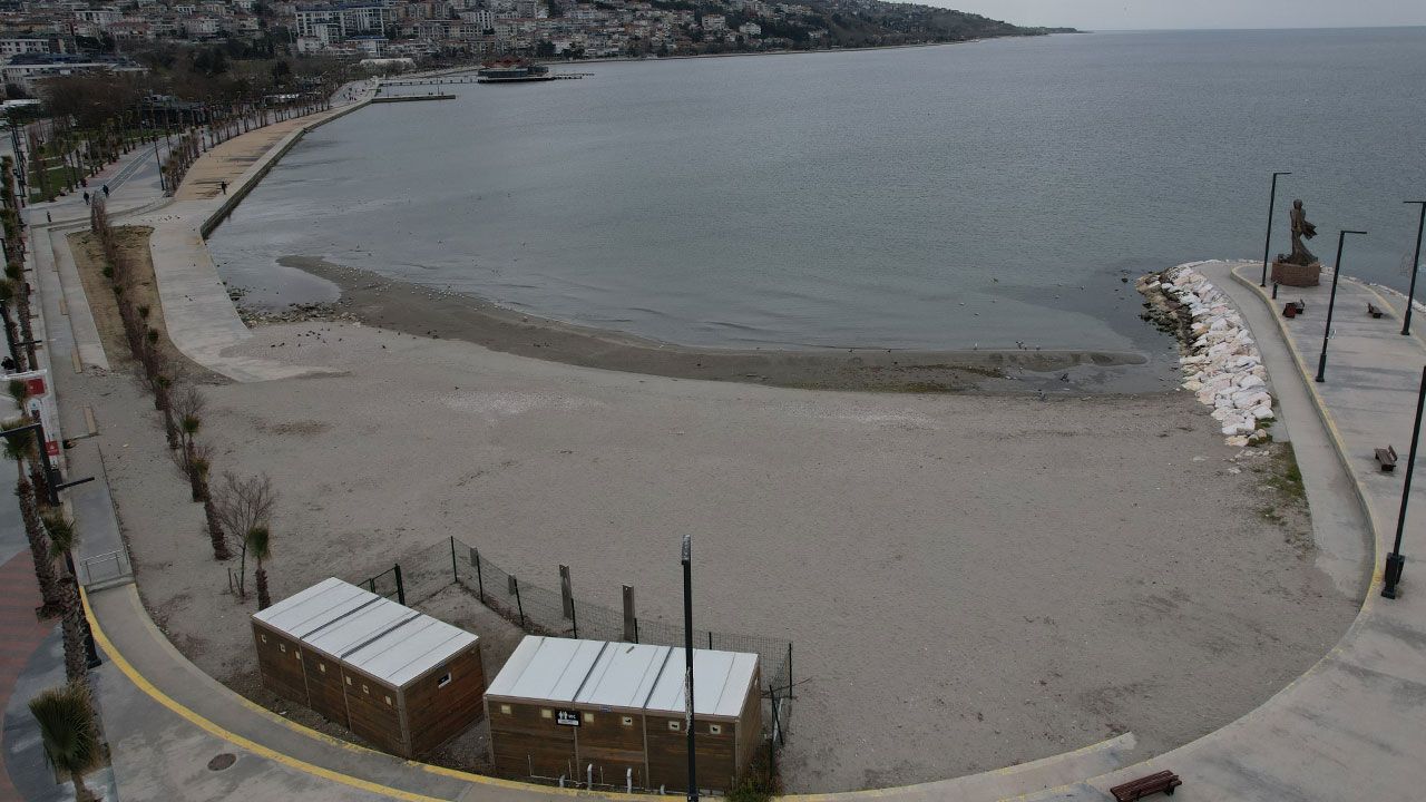Büyükçekmece sahilinde deniz çekildi